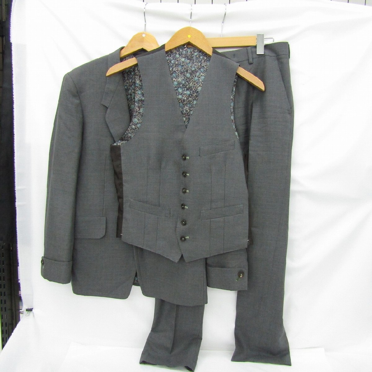 > 【中古品】Paul Smith ポールスミス スリーピース スーツ セットアップ グレー ウール ※イニシャル入り 802162153 1126