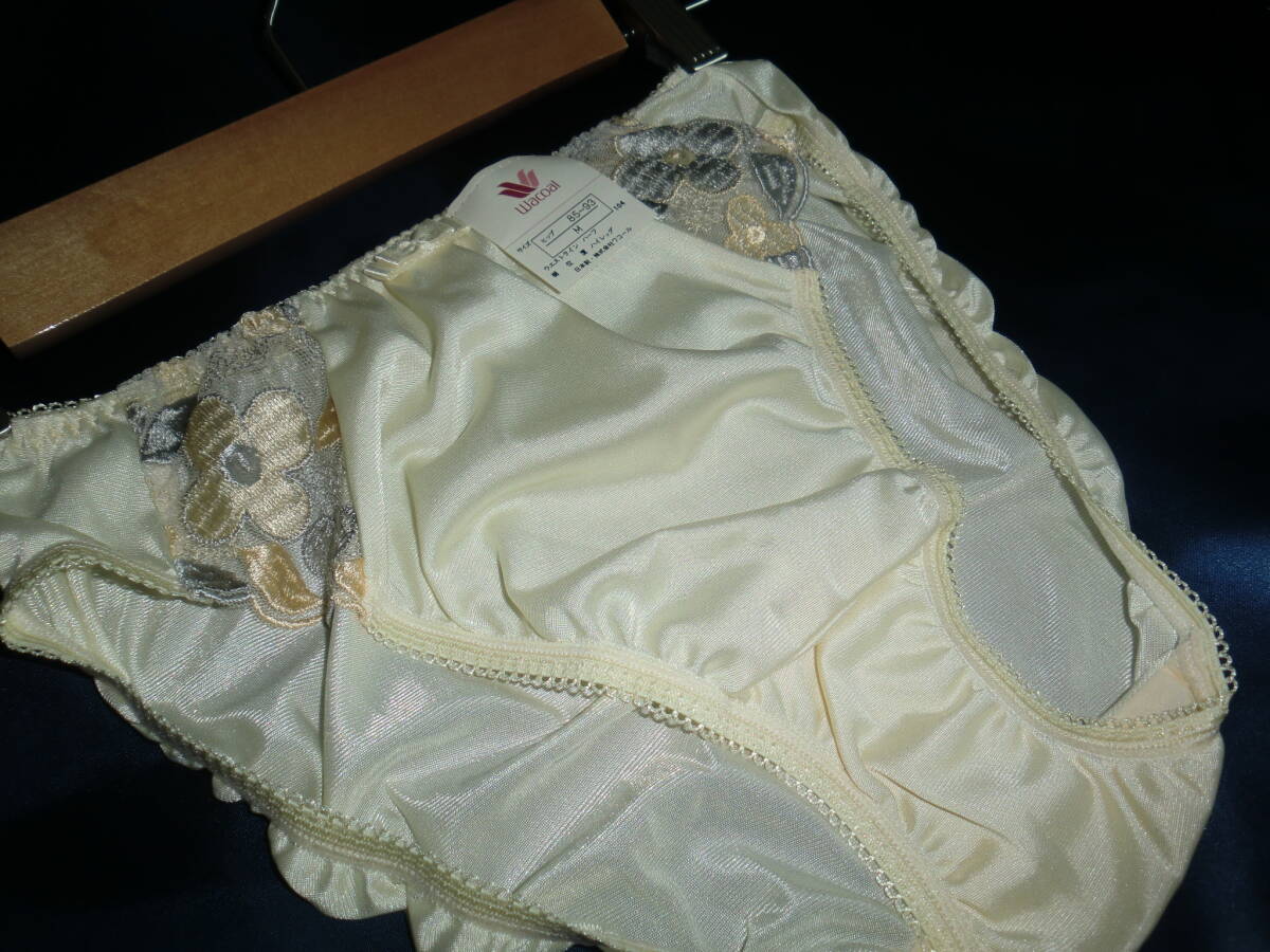 > ♪新品 希少 ワコール Wacoal レトロ 豪華立体刺しゅうレース 光沢 艶 つるつる生地 高級 ハイレッグ マダム ショーツ♪