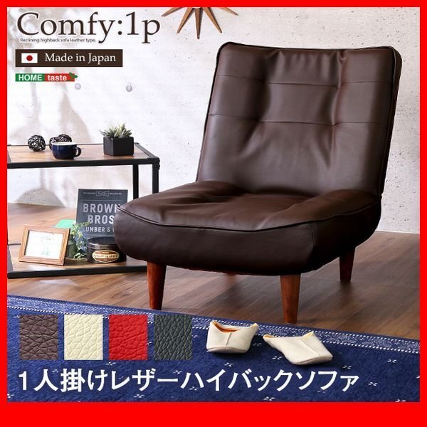 - ソファ★ハイバックソファ 1人掛け/ローソファ 座椅子にも/PVCレザー ポケットコイル リクライニング 日本製 完成品/黒 茶 白系 赤/zz