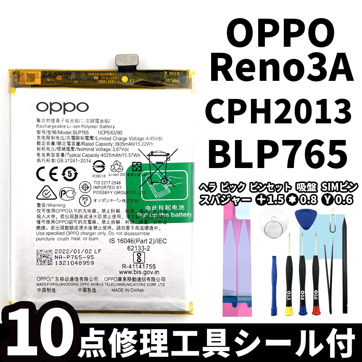 - 国内即日発送!純正同等新品!OPPO Reno3 A バッテリー BLP765 CPH2013 電池パック交換 内蔵battery 両面テープ 修理工具付