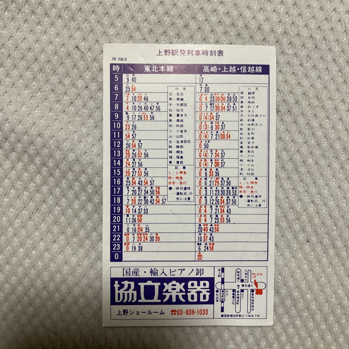 - 【昭和59年2月改正】国鉄上野駅ポケット時刻表 協立楽器
