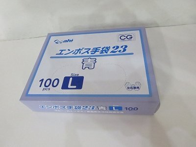 - Asahi [旭創業] 調理・食品加工用手袋 エンボス手袋23 青 Lサイズ 100枚入り 1箱 外エンボス ブルー 食品用 ※複数落札可 /未開封品