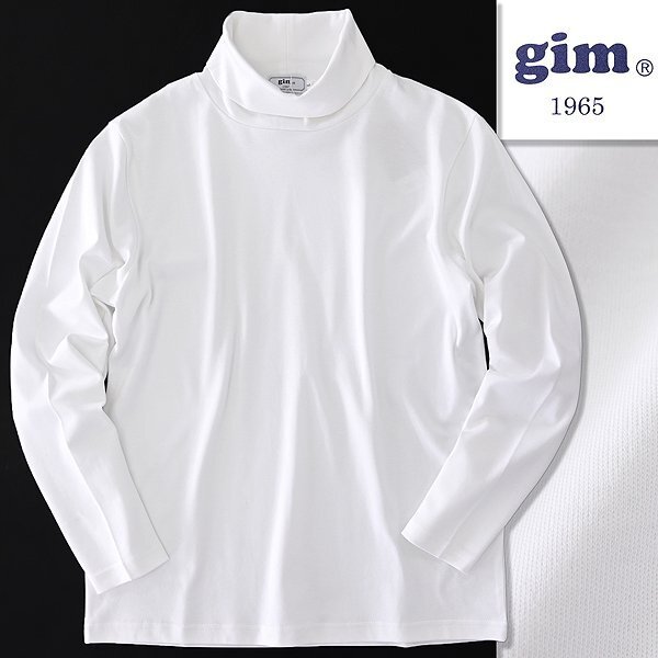 - 新品 gim ジム 抗菌 防臭 コットン100% タートルネック カットソー L 白 【I53914】 秋冬 メンズ ジャージー ニット プルオーバー ホワイト