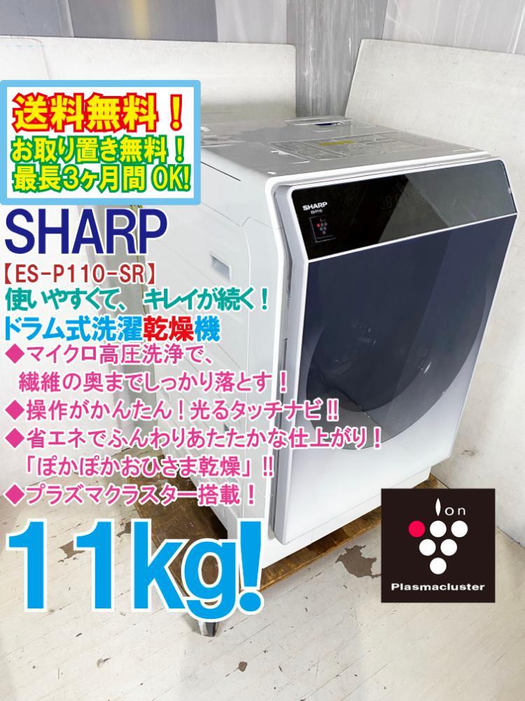 > 送料無料★極上超美品 中古★SHARP 11kg マイクロ高圧洗浄!「ぽかぽかおひさま乾燥」 ドラム式洗濯乾燥機【ES-P110-SR】FSA5