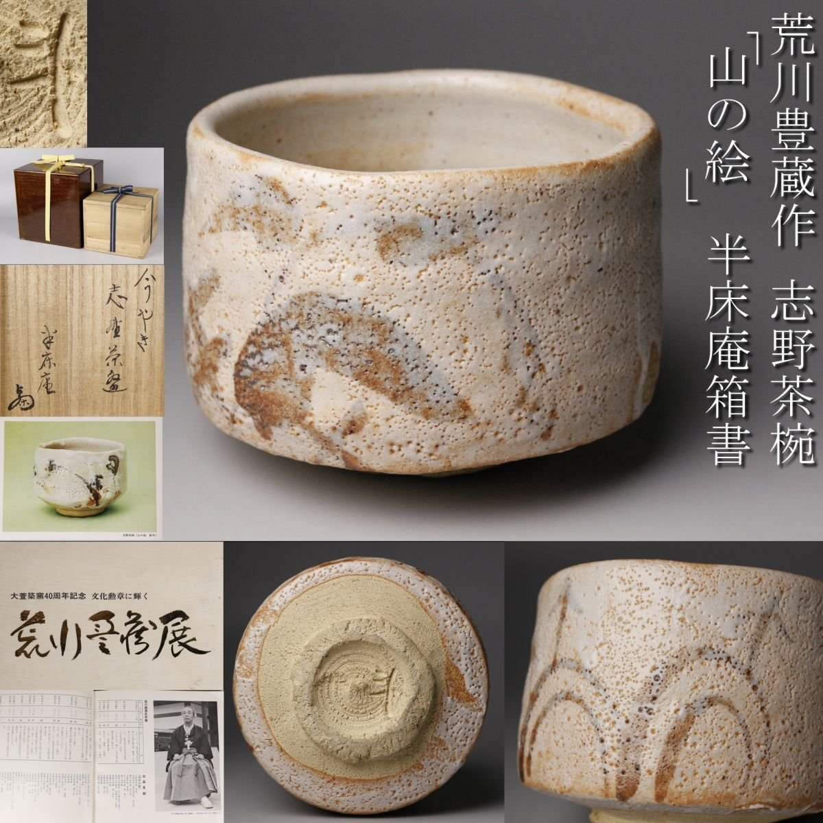 > 【LIG】荒川豊蔵作 志野茶椀 「山の絵」 半床庵箱書 二重箱 図録付 茶道具 古美術品 旧家収蔵品 [.OE]25.7