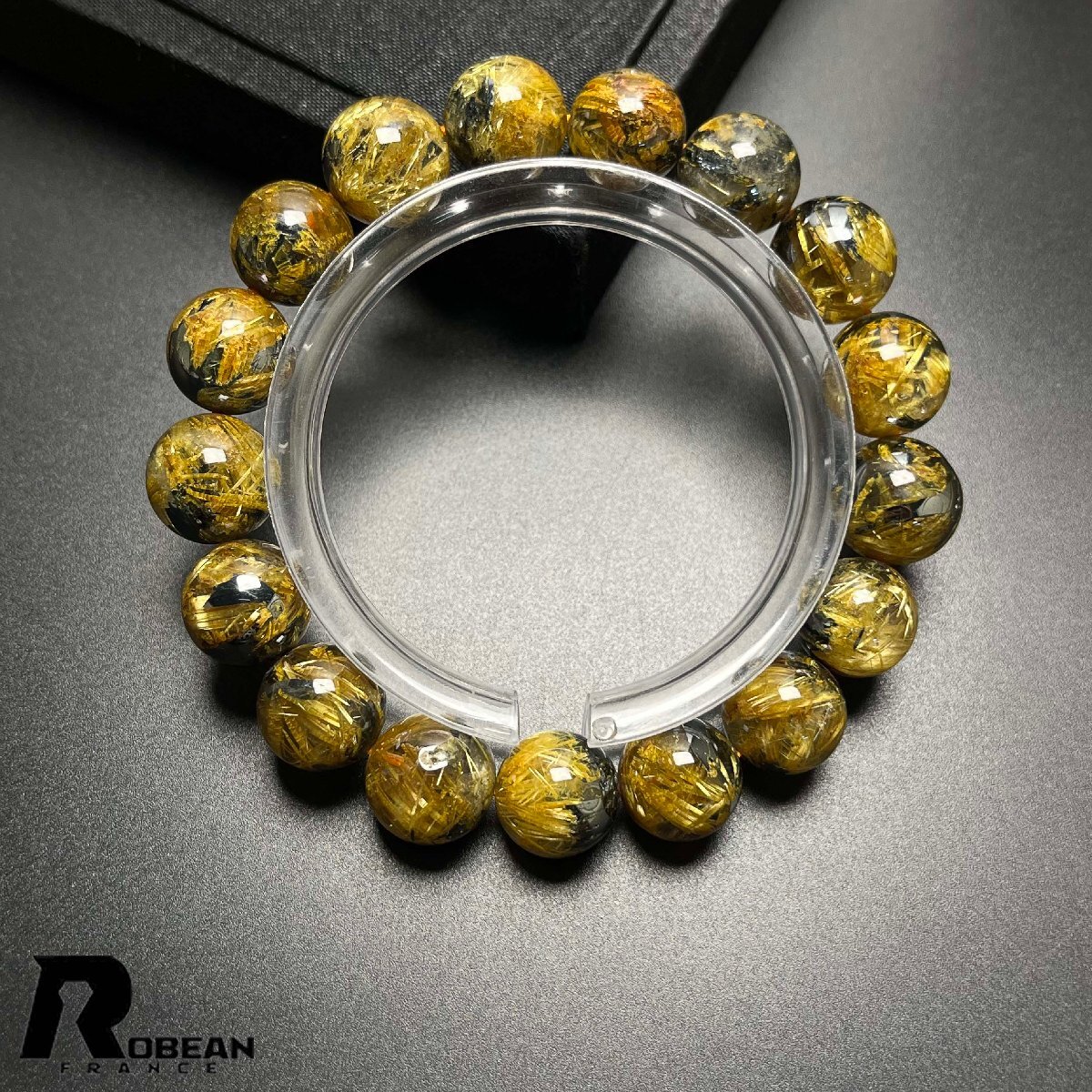 > 上品 EU製 定価85万円★ROBEAN・太陽花タイチンルチル★黄金針水晶 金運 開運 ゴールド ブレスレット パワーストーン 11.8-12.7mm D0606393