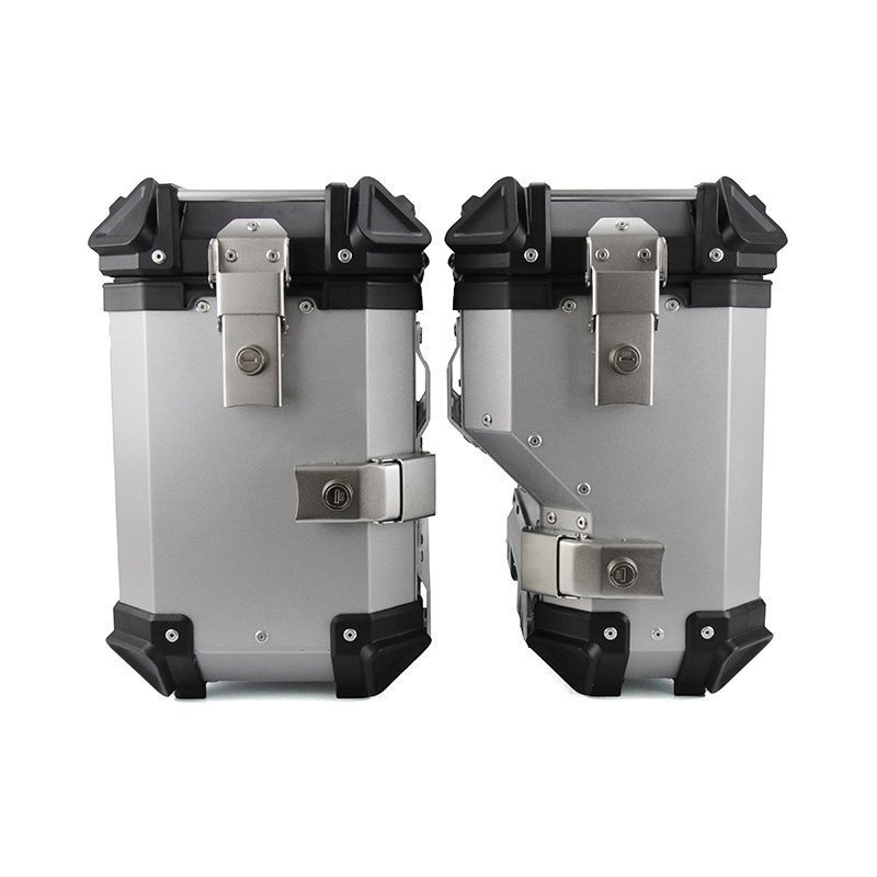 - バイク用 サイドボックス サイドケース 左右セット 38L 革裏地 防水 パニアケース 鍵/サイドキャリア付き 右パニエ凹みタイプ シルバー 386