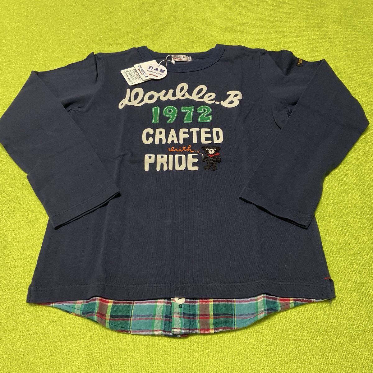 > ミキハウス ダブルB 140サイズ 新品9400円 長袖Tシャツ ロンT 重ね着風 ネイビー