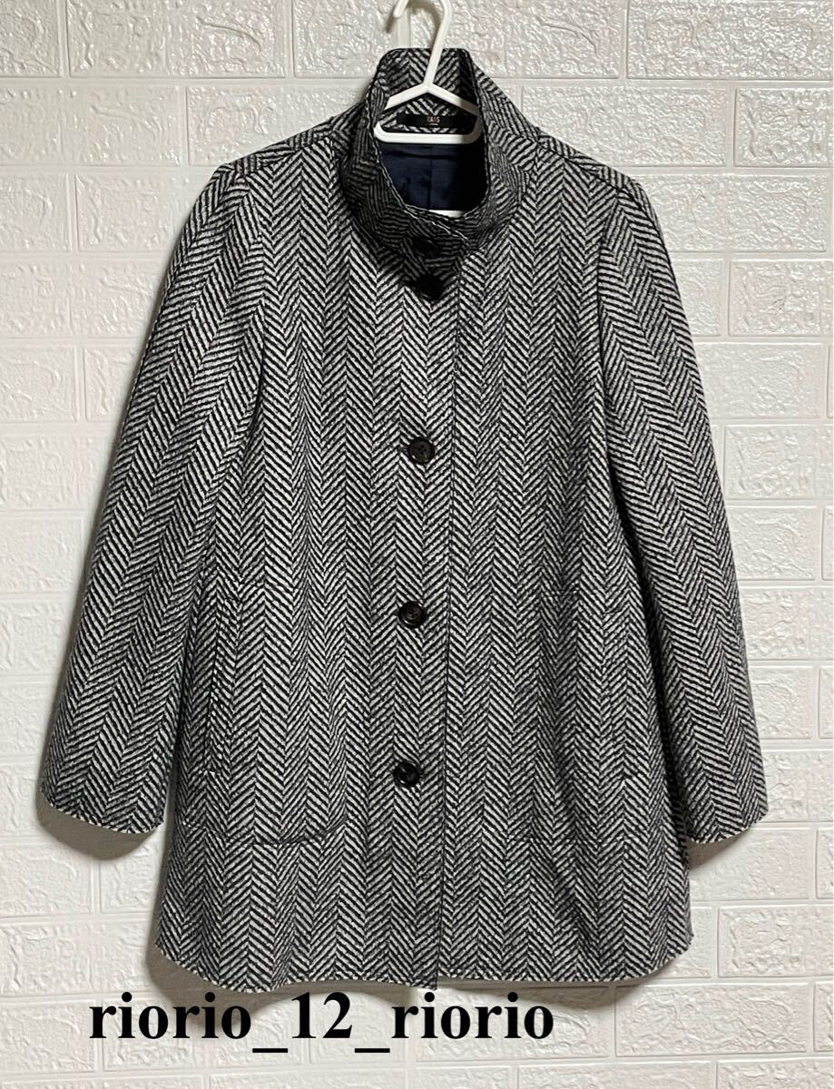 - 906 DAKS LONDON ダックスロンドン ウールスタンドカラーコート ヘリンボーン柄 ツイード生地 size38