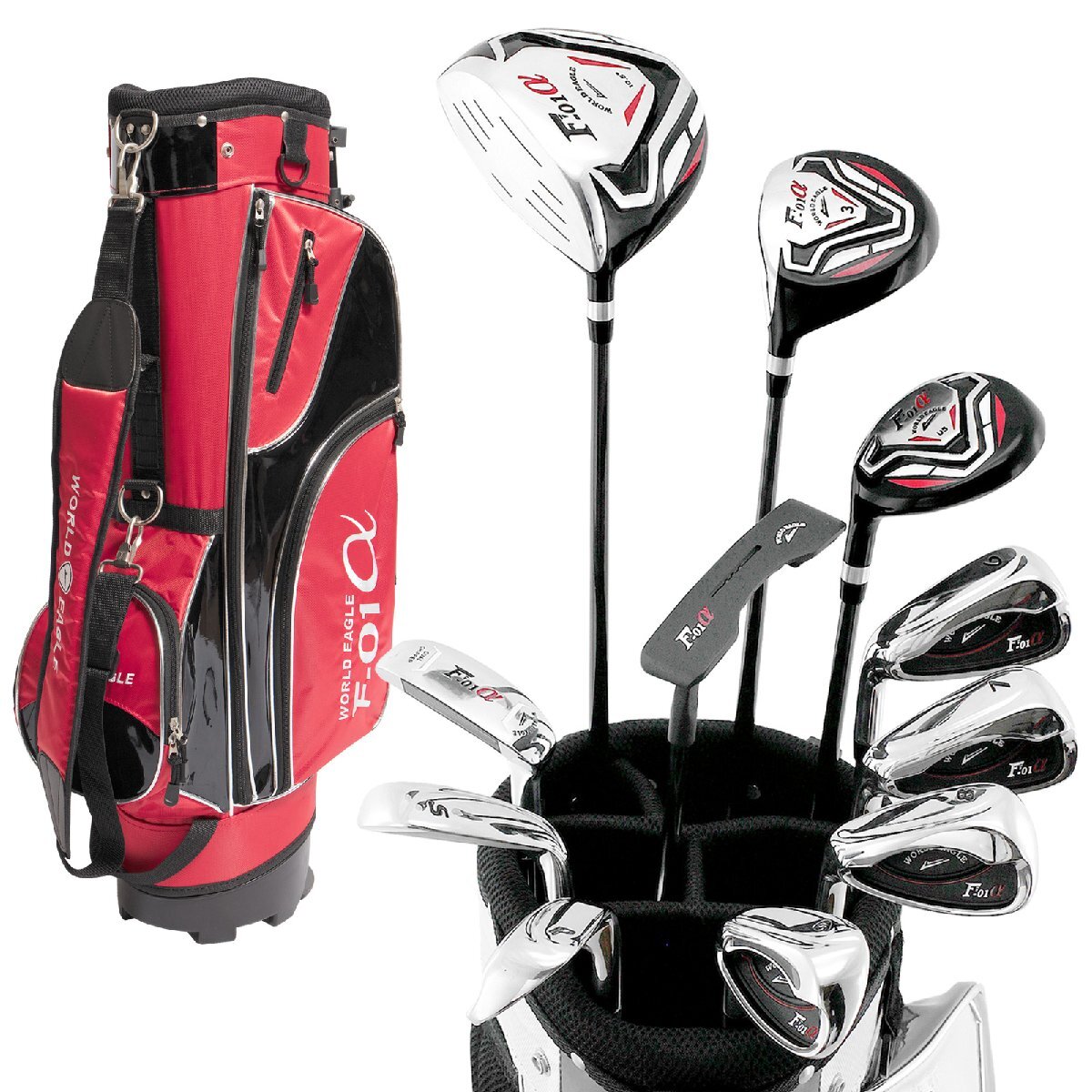 - F-01α クロスモデル メンズゴルフクラブセット スタンド式軽量キャディバッグ付 左利き用 バッグ:レッドカラー/フレックスS[33944]