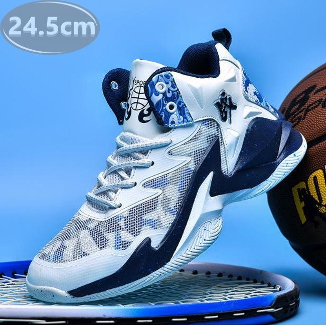 - メンズ スニーカー ブルー 24.5cm 靴 シューズ 防滑 バスケットシューズ 通勤 通学 旅行 【241】