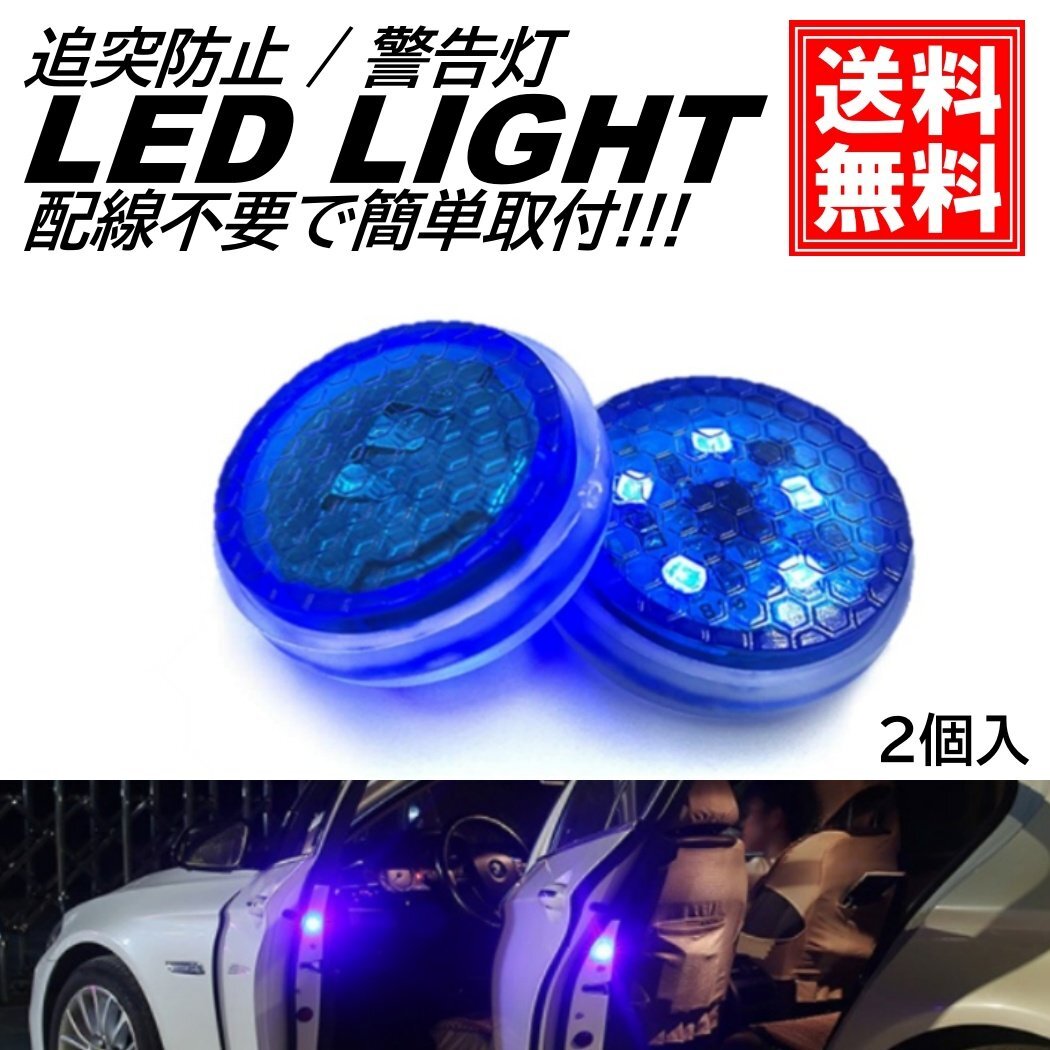 - 青色 配線不要 LED警告灯 ブルー ドアストライカー 点滅灯 追突防止 ドア開閉作動 自動センサー 電池式 マグネット式 2個入