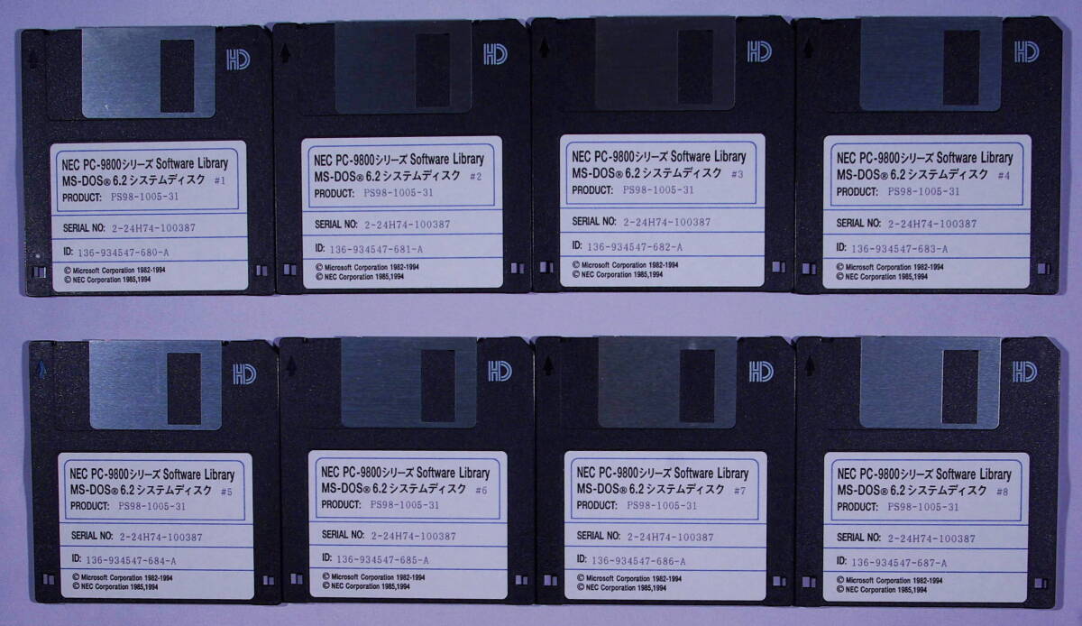 - NEC PC-9800シリーズ 3.5インチ版 MS-DOS 6.2 基本機能 ディスク + マニュアル(PDF)