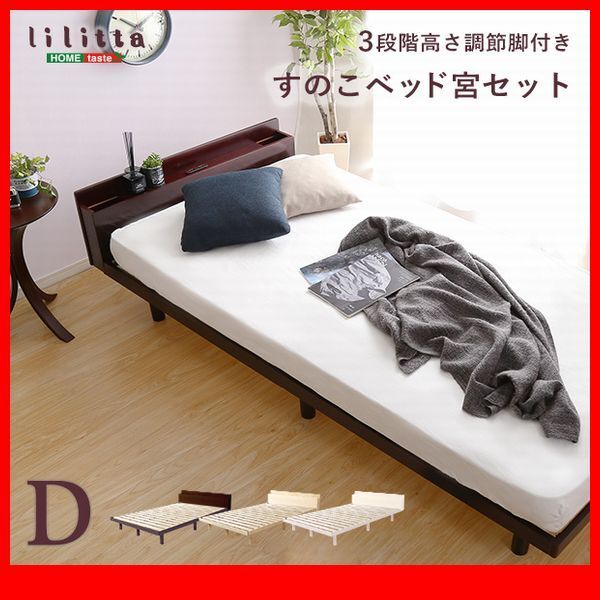 - すのこベッド★宮棚付き 3段階高さ調節 脚付きすのこベッド/ダブル/コンセント付き 北欧産パイン材 簡単組み立て/茶 白 ナチュラル/zz