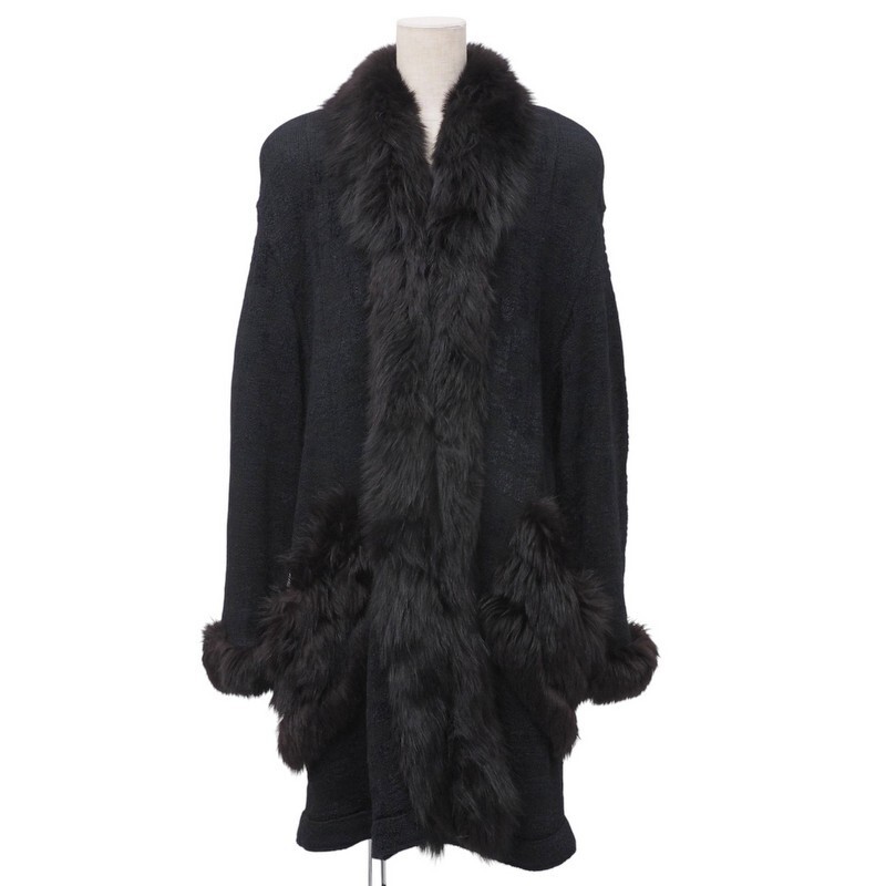 - GR3390●C.VENATOR*毛皮トリム:フォックスファー ニットコート ロングカーディガン レディース サイズF ダークネイビ―×ダークグレー系