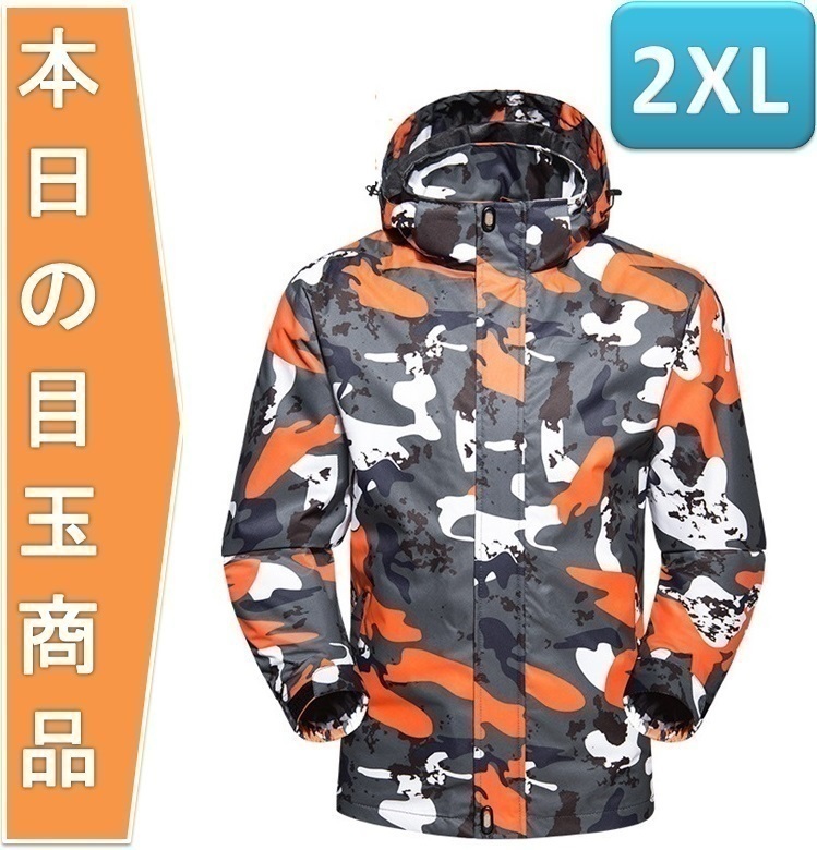 - 【 人気】メンズ マウンテンパーカー 2XLサイズ 橙迷彩 アウトドア ジャケット ウィンドシェルジャケット 登山服 アウター 153