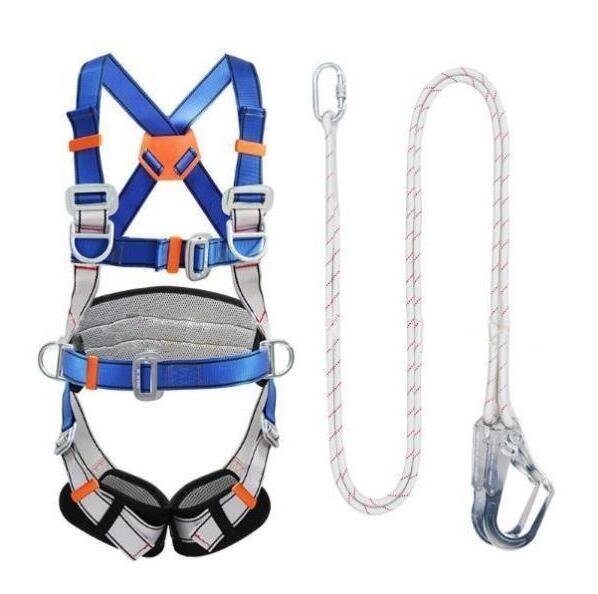 - 強力推薦★安全帯 フルハーネ スハーネス型 剣クロムメッキフック ロープ式 2丁掛け ランヤード付 1.2m 腰パット付 軽量バックル