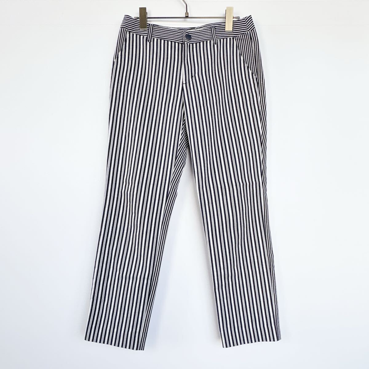 - 【美品/美脚】23区GOLF ストライプ パンツ 64(M相当) ストレッチ ゴルフウェア 紺白 ネイビー ホワイト レディース オンワード樫山