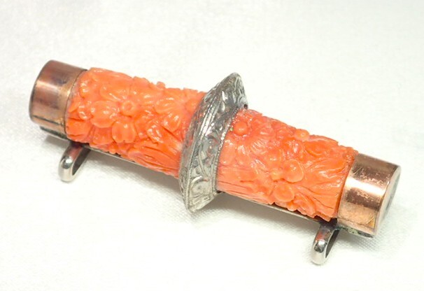 - 11251[M]可愛い 帯留め♪和装小物/着物/珊瑚/サンゴ/花/彫刻/レトロ/アンティーク♪