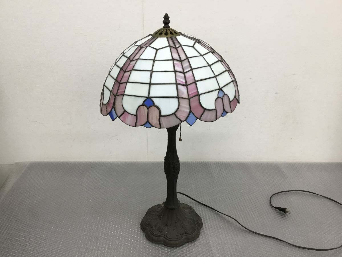 - D632 稼働品 直接引き取り限定 ステンドグラス製フロアランプ 照明 ガラス 高さ56cm 古美術品(卓上ティファニー) アンティーク 現状品