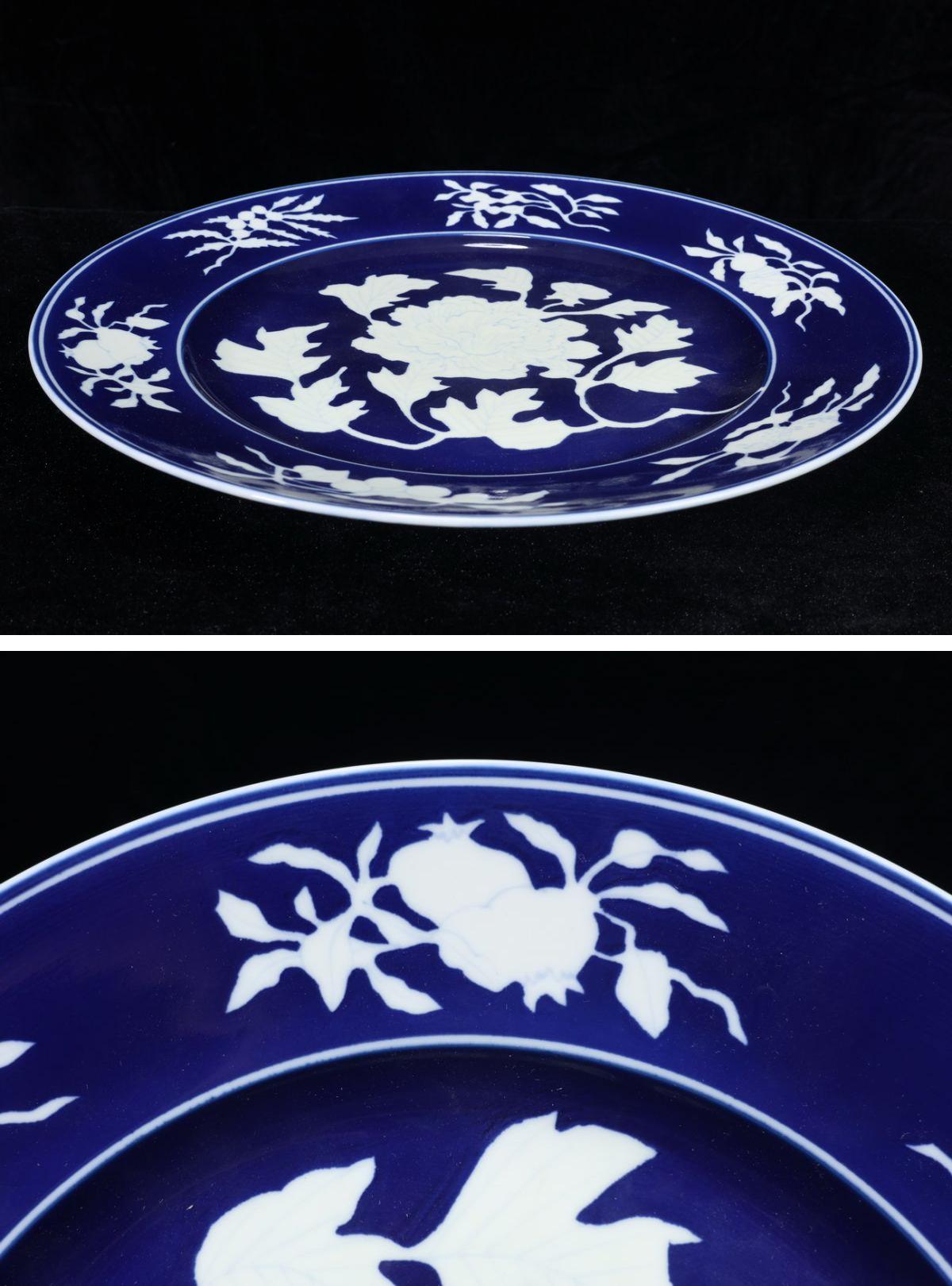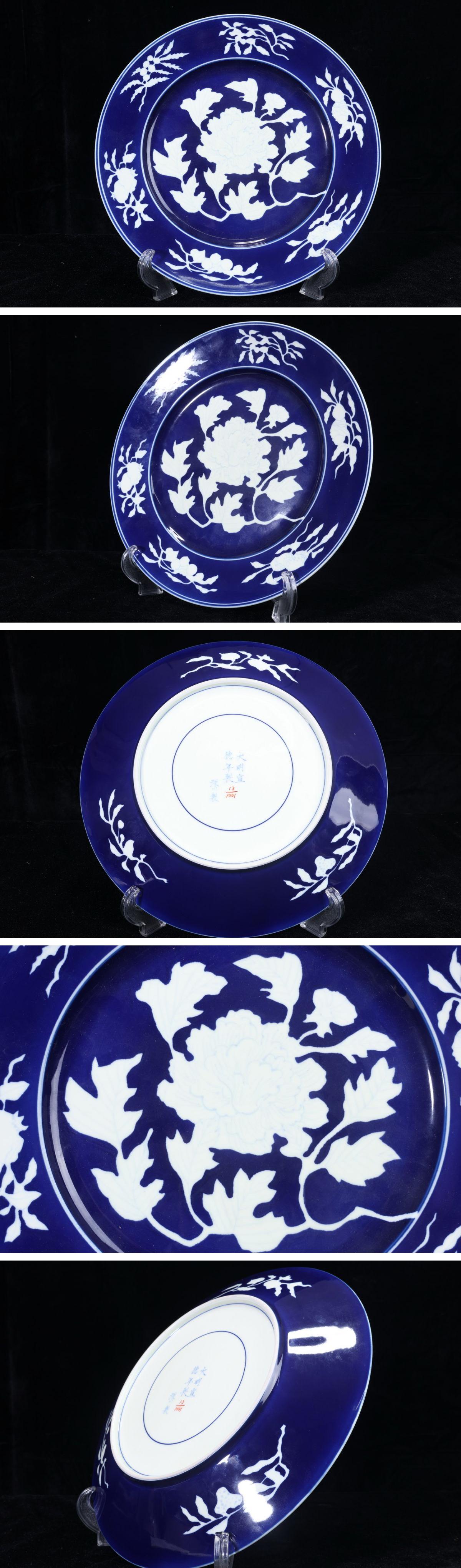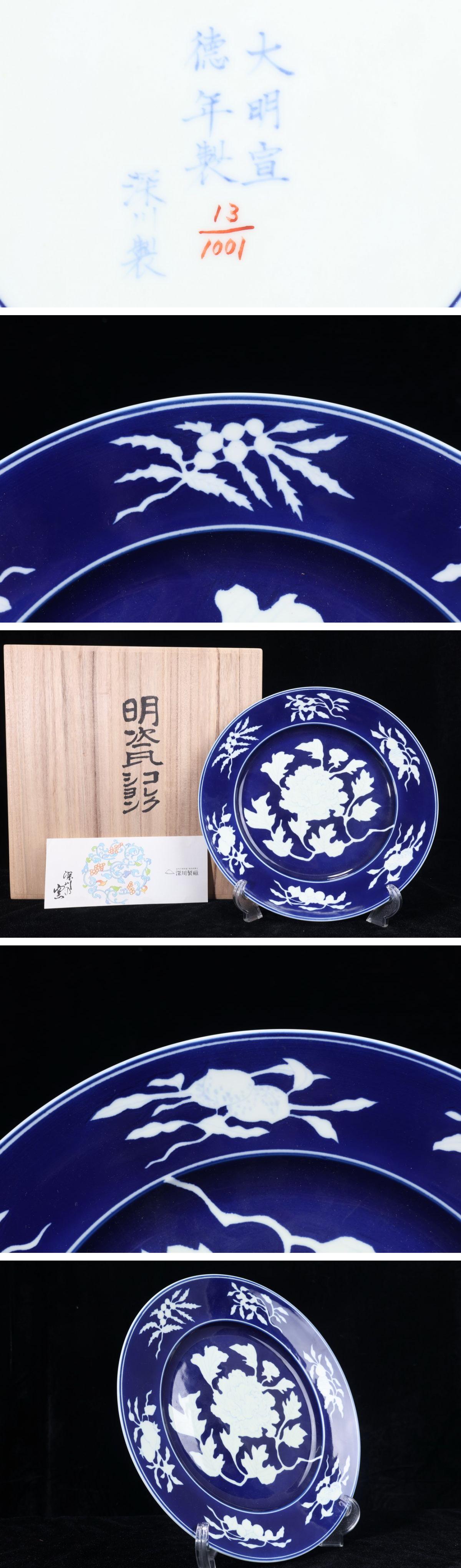 > 【珍品堂】1円から V61-V100 深川製磁 宮内庁御用達 大明宣德年製 明瓷コレクション 牡丹絵 皿 草花折枝白抜紋 時代物 骨董品 古美術