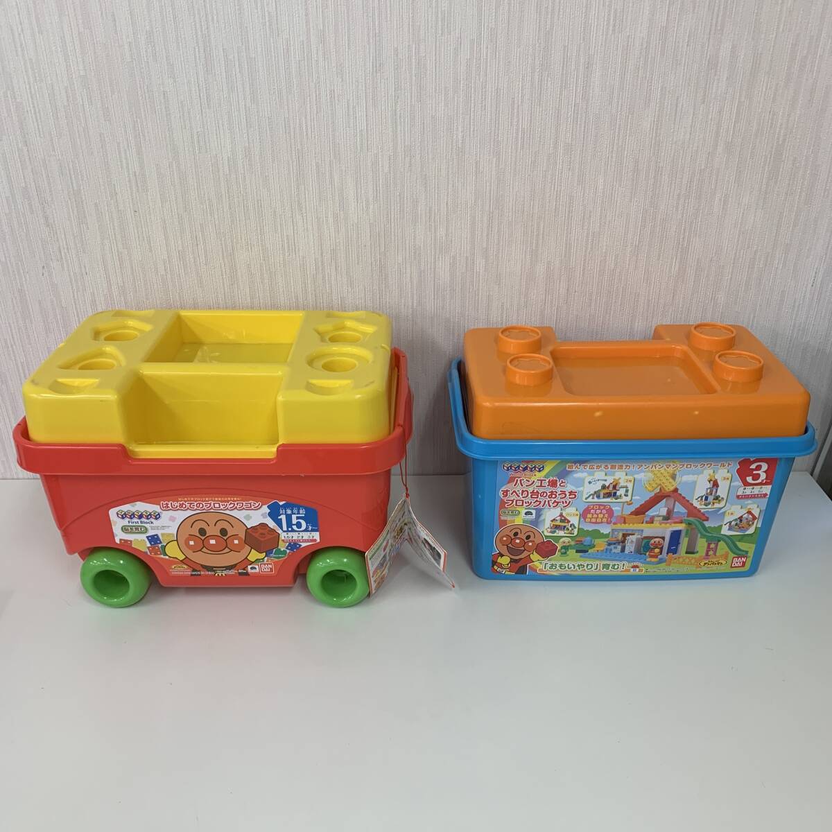 > それいけ!アンパンマン 玩具 2点セット 現状品/ブロックラボ1st はじめてのブロックワゴン+パン工場とすべり台のおうちブロックバケツ