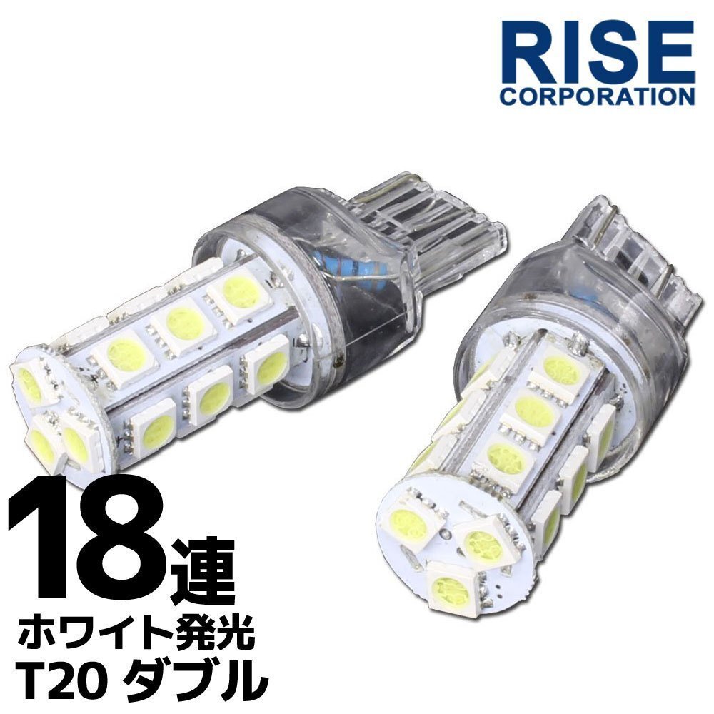 > T20 ウェッジ球 18連 SMD 3チップ LEDバルブ ホワイト ダブル球 2個セット 12V用 ライト ランプ 自動車・バイク テールランプ ウインカー