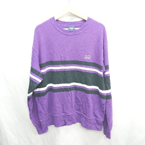 - ◇ ⊇ Lee リー ライン入り ロゴ刺? 長袖 トレーナー サイズXL パープル ブラック ホワイト レディース メンズ E