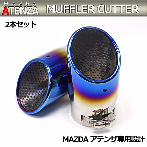 > マツダ マフラーカッター 2本セット ステンレス製 アテンザ セダン ワゴン GJ系 チタンカラー スラッシュカット パーツ カスタム 焼きブル