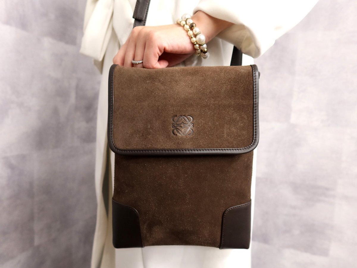 - ●超美品●LOEWE ロエベ●アナグラム●ロゴ型押し●スエード カーフ レザー 本革●ショルダー バッグ●ブラウン●ゴールド金具●Js62843