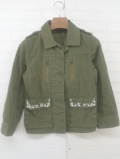 > ◇ Apuweiser-riche アプワイザー リッシェ ビジュー付 七分袖 ミリタリー ジャケット サイズ1 カーキ レディース P