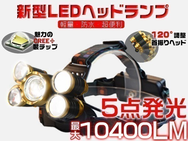 - 1円~2個セット LEDヘッドランプ 4発光モード 5灯式 MAX10400Lm ボディーセンサー搭載 防災 防水 6ヶ月保証 「WP-YXFSx2」