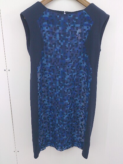 - ◇ ICB アイシービー チェック 透かし ノースリーブ ミニ ワンピース サイズ7 ネイビー ブルー マルチ レディース