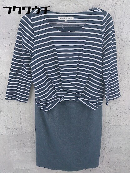 - ◇ STRAWBERRY-FIELDS ストロベリーフィールズ ボーダー 七分袖 膝丈 ワンピース ネイビー ホワイト レディース