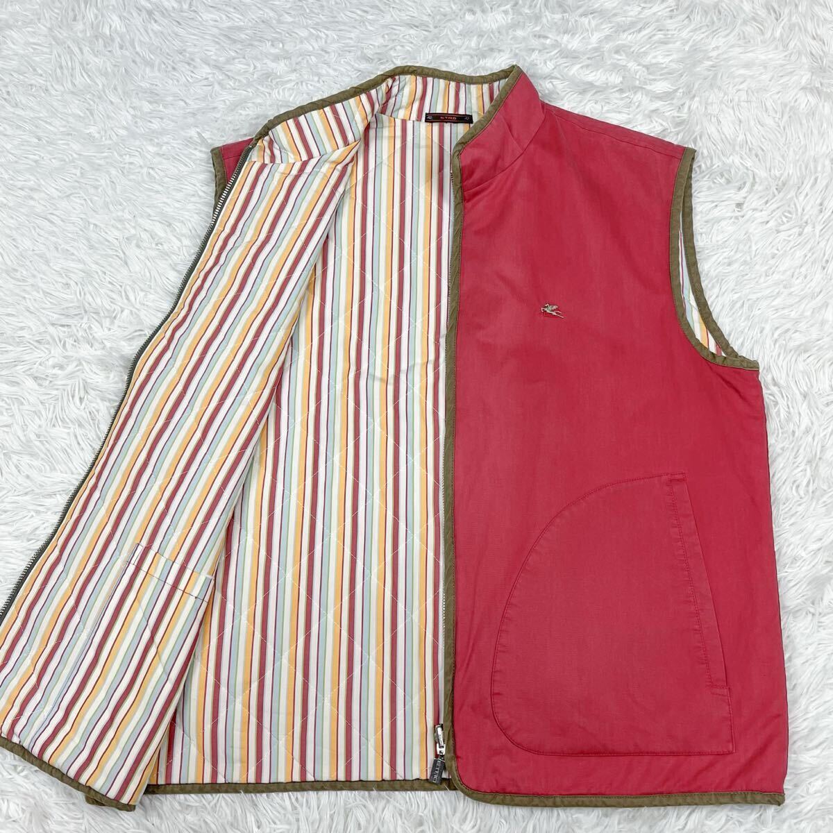 > 希少 XL相当 ●エトロ/ETRO リバーシブル ベスト キルティング ロゴ刺繍 ジップブルゾン コットン メンズ L レッド カーキ マルチカラー