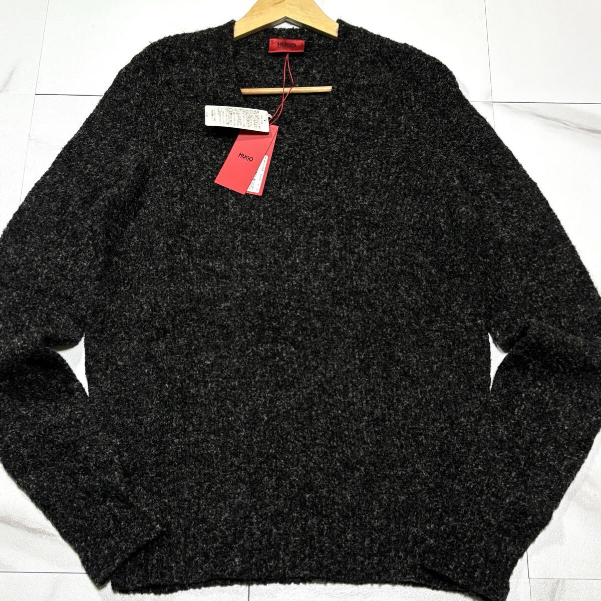 - 新品タグ付き/ Lサイズ相当 HUGO BOSS ヒューゴボス ニット セーター 肉厚 ウール ローゲージ ダークグレー