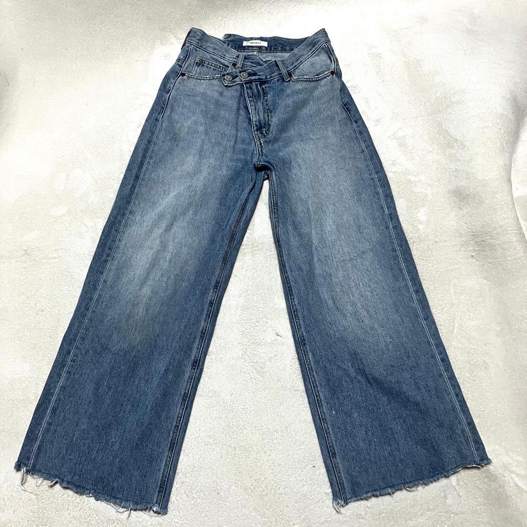> MOUSSY マウジー CROSS WAIST WIDE STRAIGHT クロスウエストワイドストレート 2 L相当 カットオフ コットン インディゴ