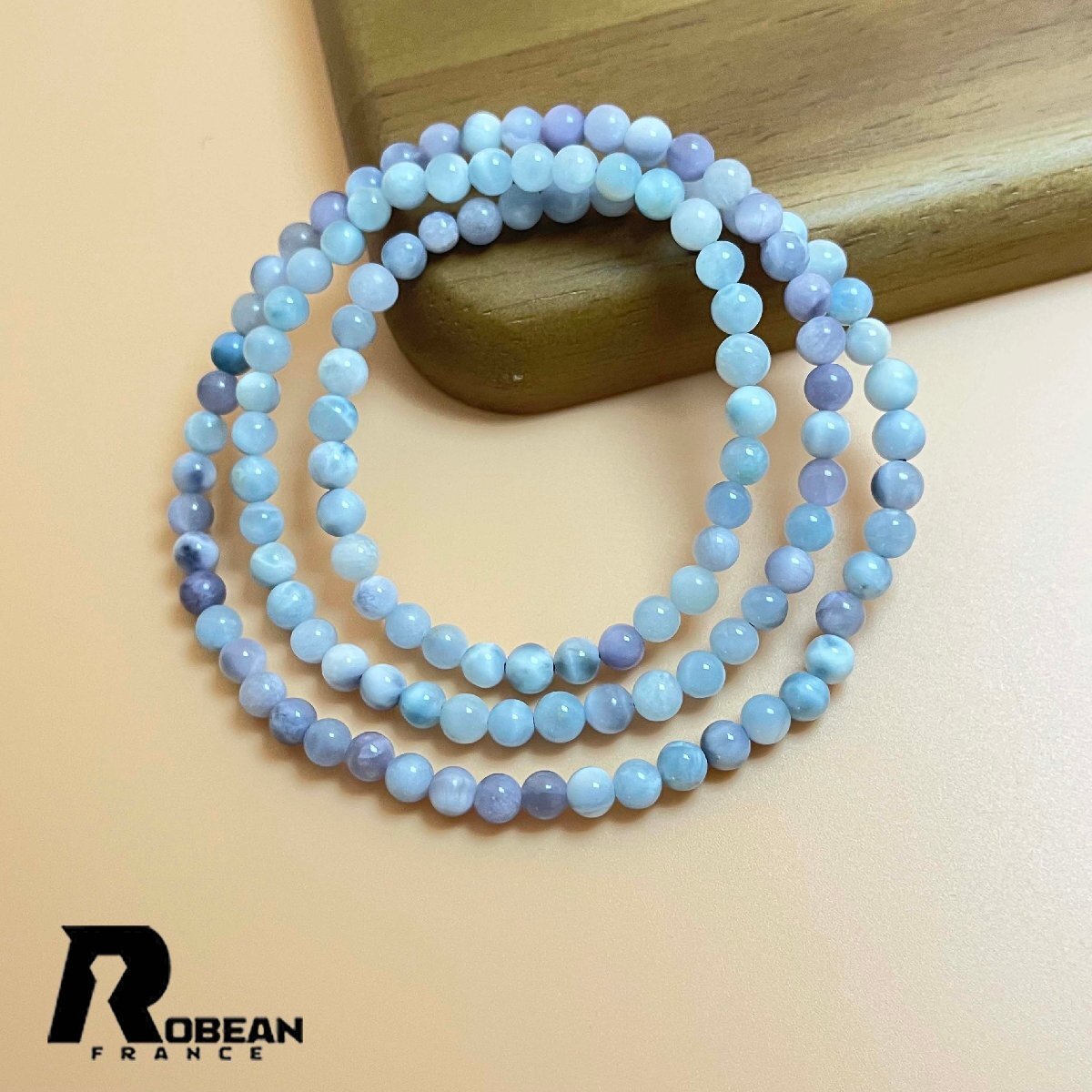 > 高級 EU製 定価13万円★ROBEAN・ドミニカ共和国産のパープルラリマー★3本巻きブレス パワーストーン 天然石 開運 金運 5-5.6mm K0930103