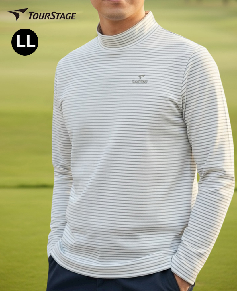 > 新品タグ付き■ブリヂストンゴルフ TOURSTAGEツアーステージストライプ モックネック長袖シャツ/LL■在庫限り■
