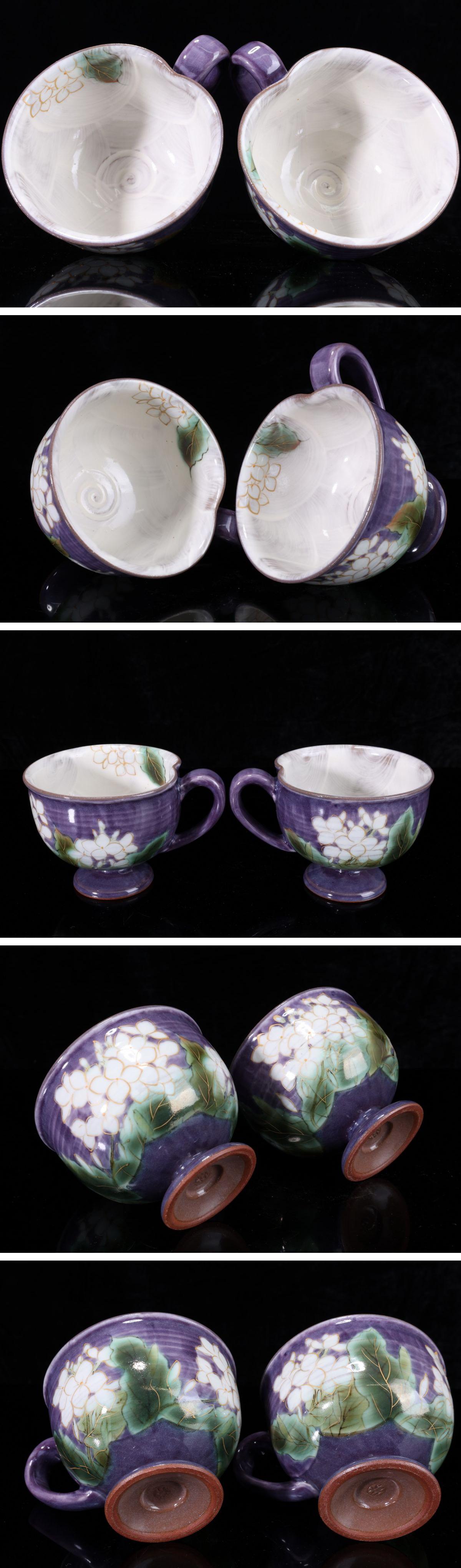 - 【珍品堂】1円から Q12-V9 京焼 清水焼 陶庵 花絵 コーヒーコップ2客 細密細工 径9.5㎝ 足付き 紫地 時代物 工芸品 骨董品 古美術 鑑賞品