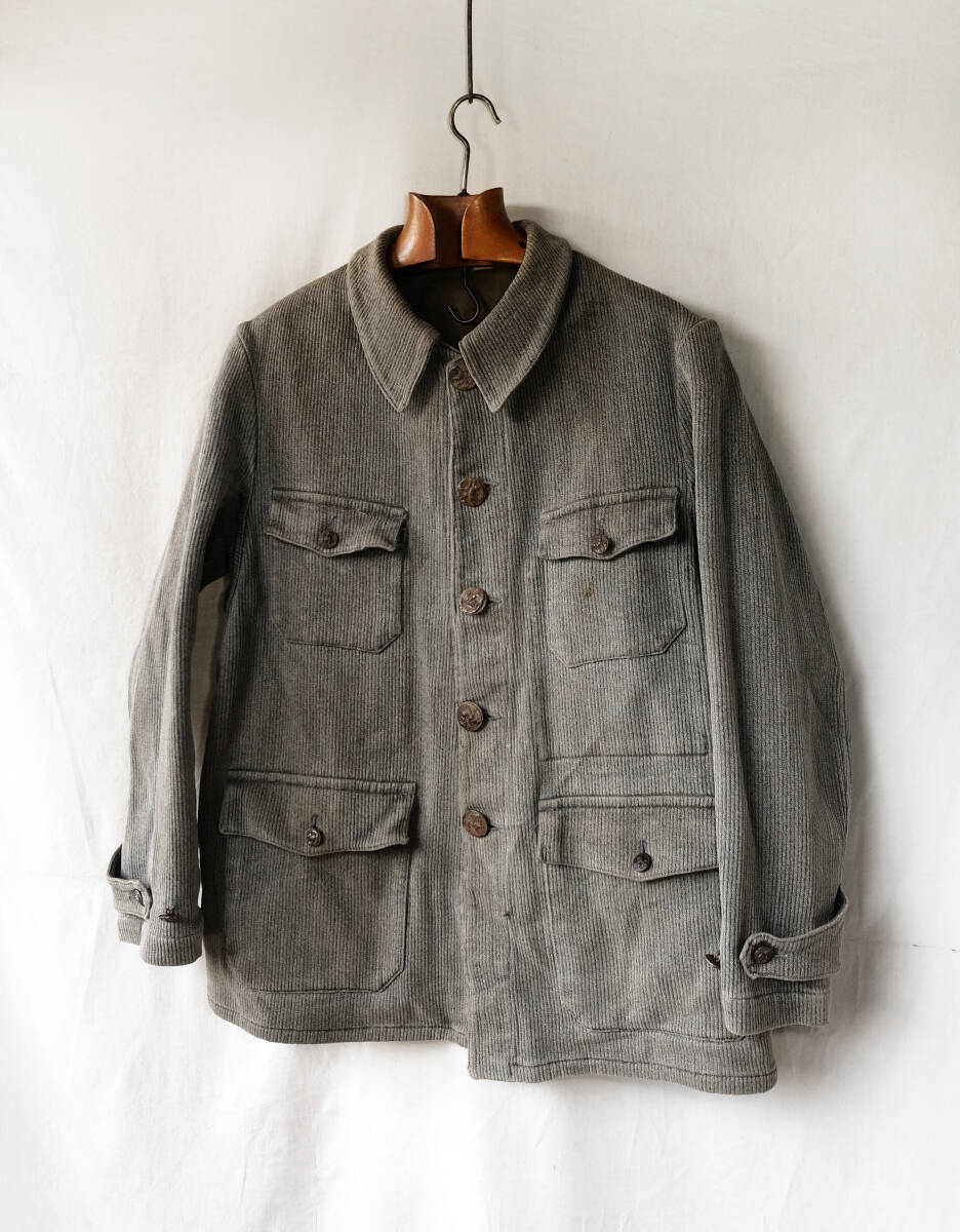 - 1930's 1940's フランス ヴィンテージ Kiplay ごま塩コットンピケハンティングジャケット 動物ボタン 30s 40s ワークジャケット ベスト