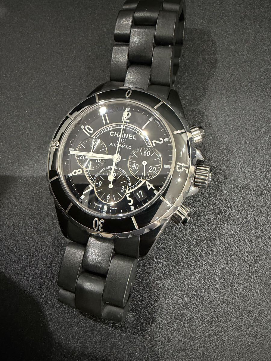 > 超美品 シャネル J12 CHANEL 自動巻 H0939 クロノグラフ メンズ腕時計 稼働品 ブラック 1スタ 新品仕上げ