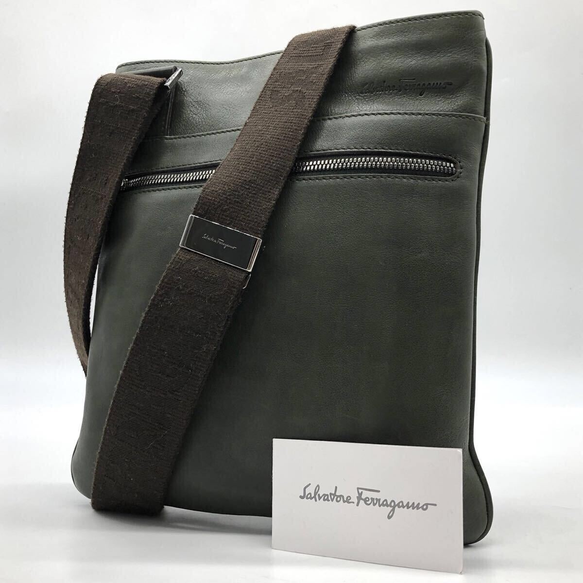 - 5522-2【近年モデル】Salvatore Ferragamo サルヴァトーレフェラガモ ショルダーバッグ サコッシュ 斜め掛け ロゴ レザー 本革 メンズ