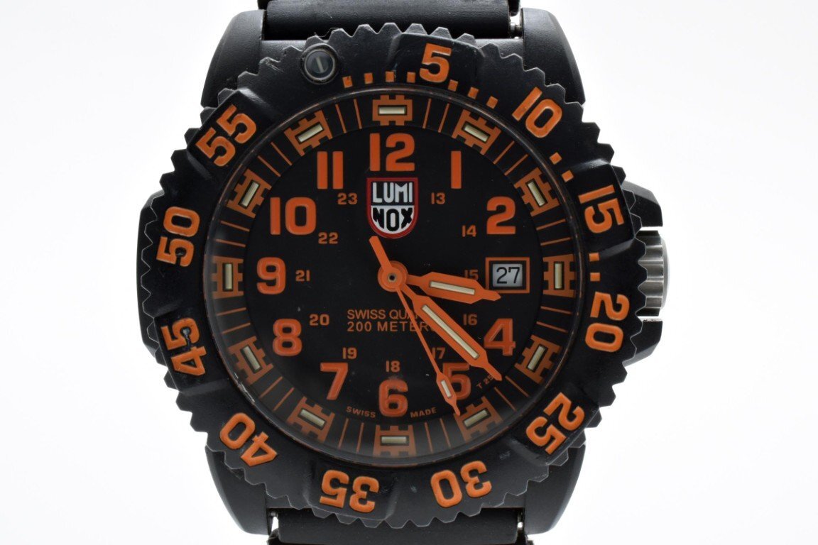 - LUMI-NOX ルミノックス 3050/3950 ラウンド 3針 黒 ブラック メンズ 腕時計 デイト 黒文字盤 オレンジ文字