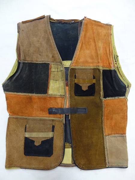 - ビンテージ 希少 70S ハンドメイド 1点物 レザー パッチワーク ベスト マルチカラー レア ヒッピー USA製 アジ 雰囲気 革 ペン ポケット 珍