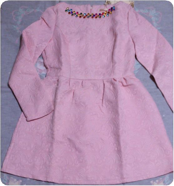 - 訳有新品タグ付*ビジュー*フラワー型押し総柄*長袖ワンピ■送660