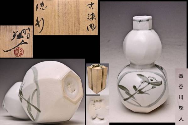 - 長谷川塑人 ★ 九谷古染風瓢箪徳利 ★ 共箱栞 ★ 検 田村耕一 中村梅山 ★