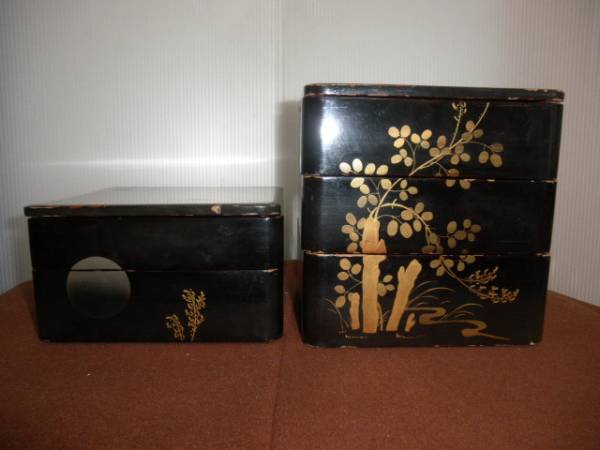 - @@@輪島塗/重箱/古民具/漆芸/重箱/茶道具/月見/弁当箱/蒔絵/時代