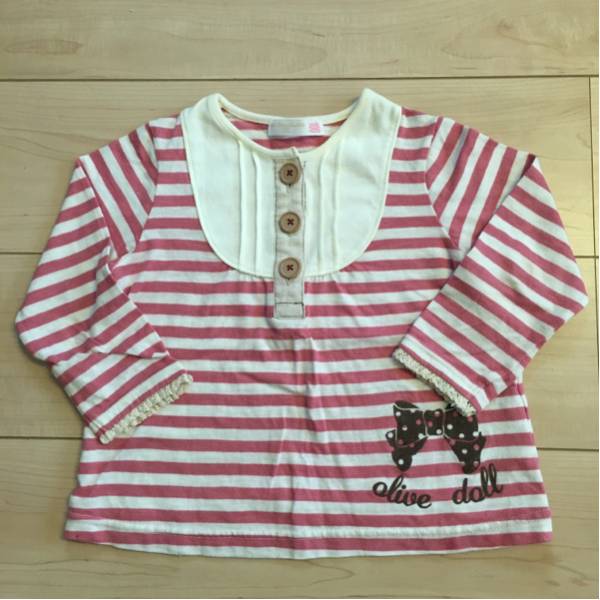 - オリーブデオリーブ ロンt ロングtシャツ 長袖シャツ ボーダー柄 リボン ピンク 100 即決