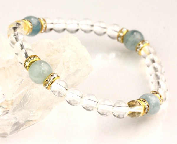 - 送料無料!素敵で綺麗なアクアマリン&水晶ロンデルゴールドの豪華ブレス